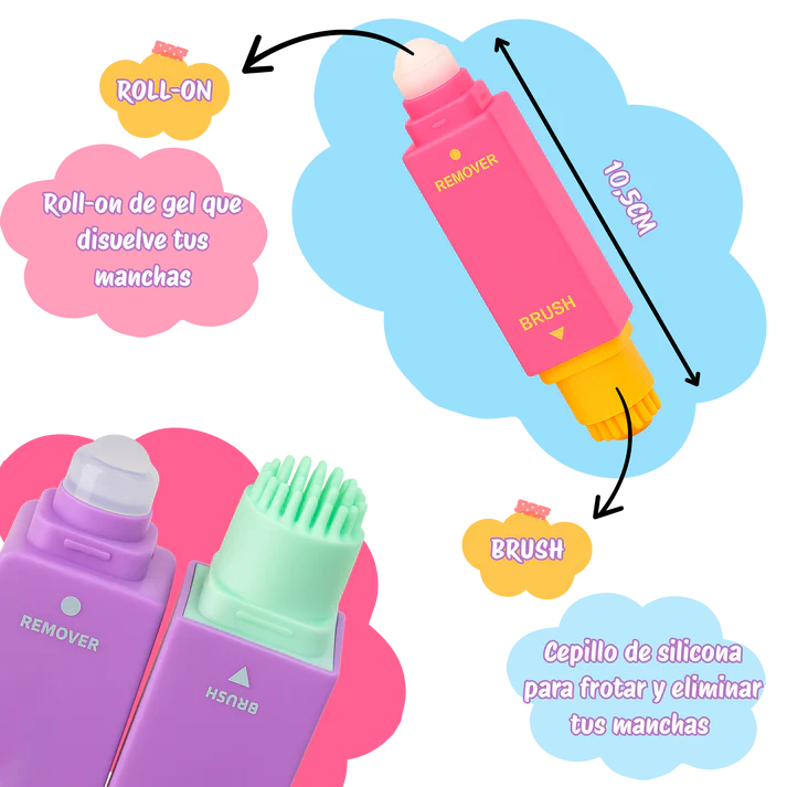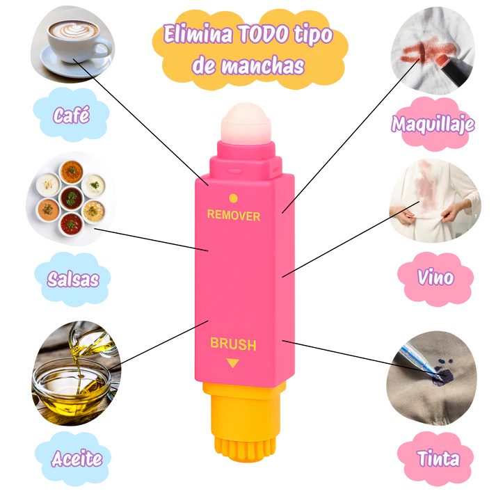 El Bolígrafo limpia manchas 2 en 1 es una herramienta práctica y eficiente para eliminar manchas de forma rápida y precisa.
